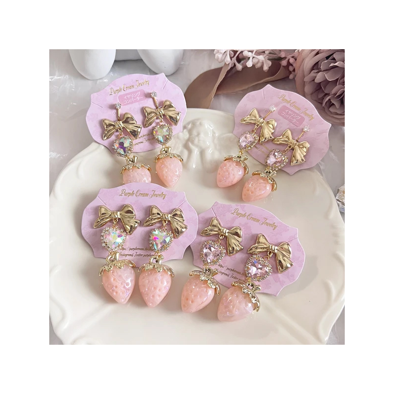 Boucles d'oreilles fraises roses